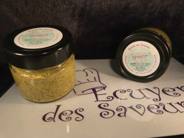 Moutarde au basilic élaborée par nos soins avec graines Vaudoise